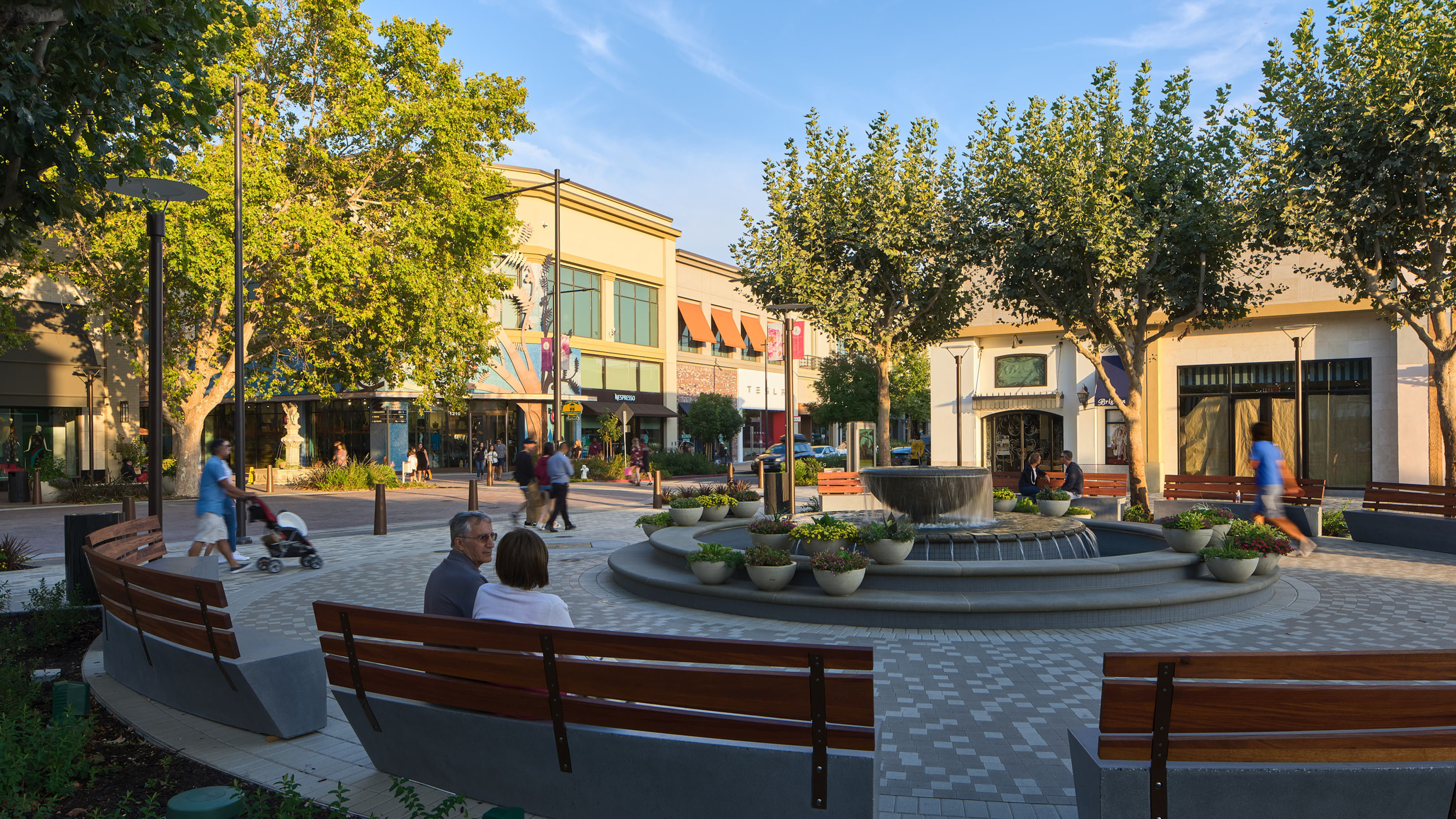 It is perhaps time to drop the "Muzak" moniker, with its negative connotations, and to talk of background music instead - with a role similar to that of the movie soundtrack. Projects that emphasize placemaking such as Country Club Plaza, Easton Town Center and Victoria Gardens all feature carefully crafted outdoor spaces defined by background buildings. The setting is enlivened by "foreground" elements such as retail storefronts, a fountain perhaps, or a key retail anchor such as the Apple Store at Broadway Plaza near San Francisco, a pristine object surrounded by a more traditional building fabric.
