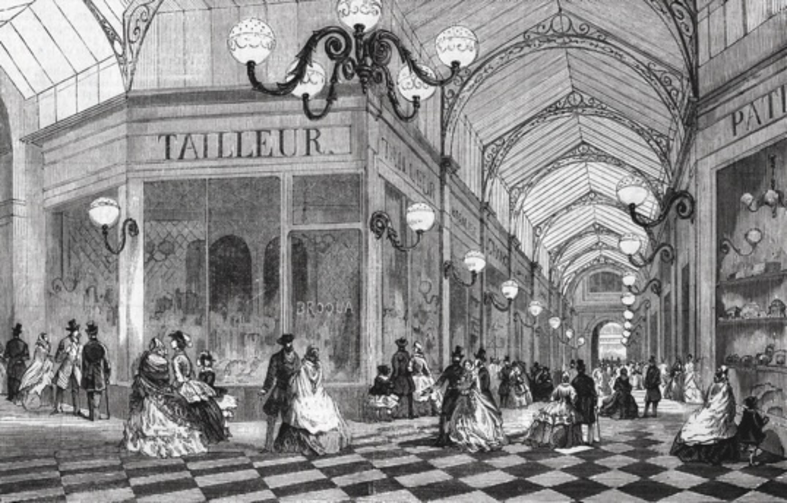 Image: The Passage des Princes, Paris, opened in 1860. Storefront displays, glass skylights and gas lighting all contributed to the creation of a setting for promenading and meeting friends - a refuge from the hustle and bustle of the street, and an opportunity to expand social networks.