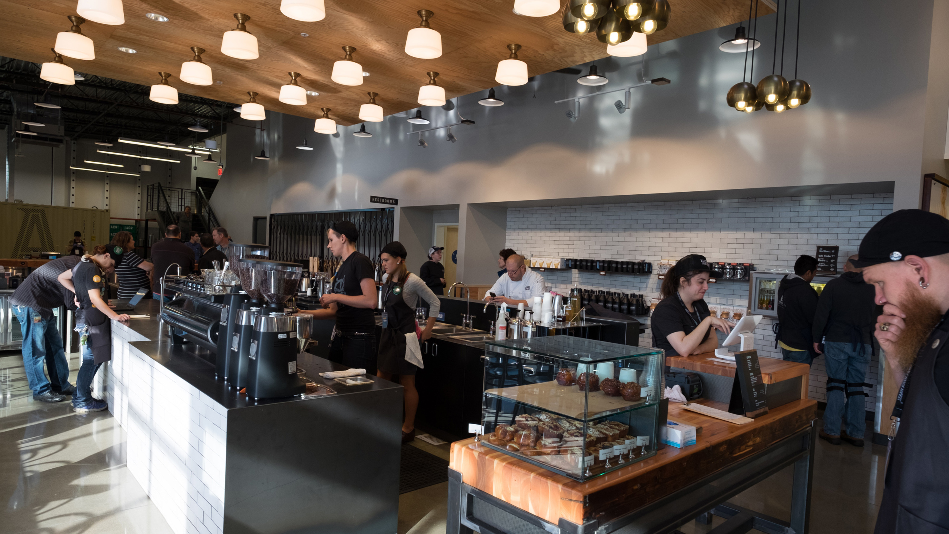 This project posed a unique design challenge—one third of the floorplan was under mixed use/light industrial zoning, and the other two thirds were under commercial zoning. As a solution, we created a roastery concept withcWhole Foods’ own coffee roasters, Allegro, to respond to the coffee boom making its way across North California at the time. We designed a coffee bar with salvaged glulam beam bar tops and seating. An open floor plan connects the manufacturing space to the retail space, allowing us to blend mixed-use with commercial. To reflect the manufacturing function of the space, we used industrial materials like flatlock metal panels applied to the building’s facade. Reclaimed redwood transitioned the modern metal to the more traditional craftsman-style design. To ensure the store reflected the feel and history of its home state, all reclaimed materials were sourced within the Bay Area and Mendocino County.