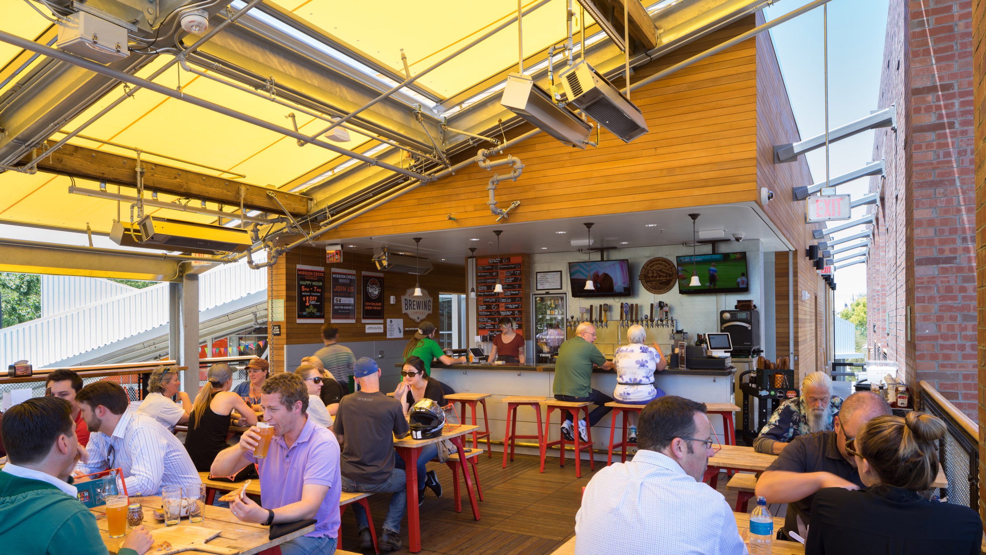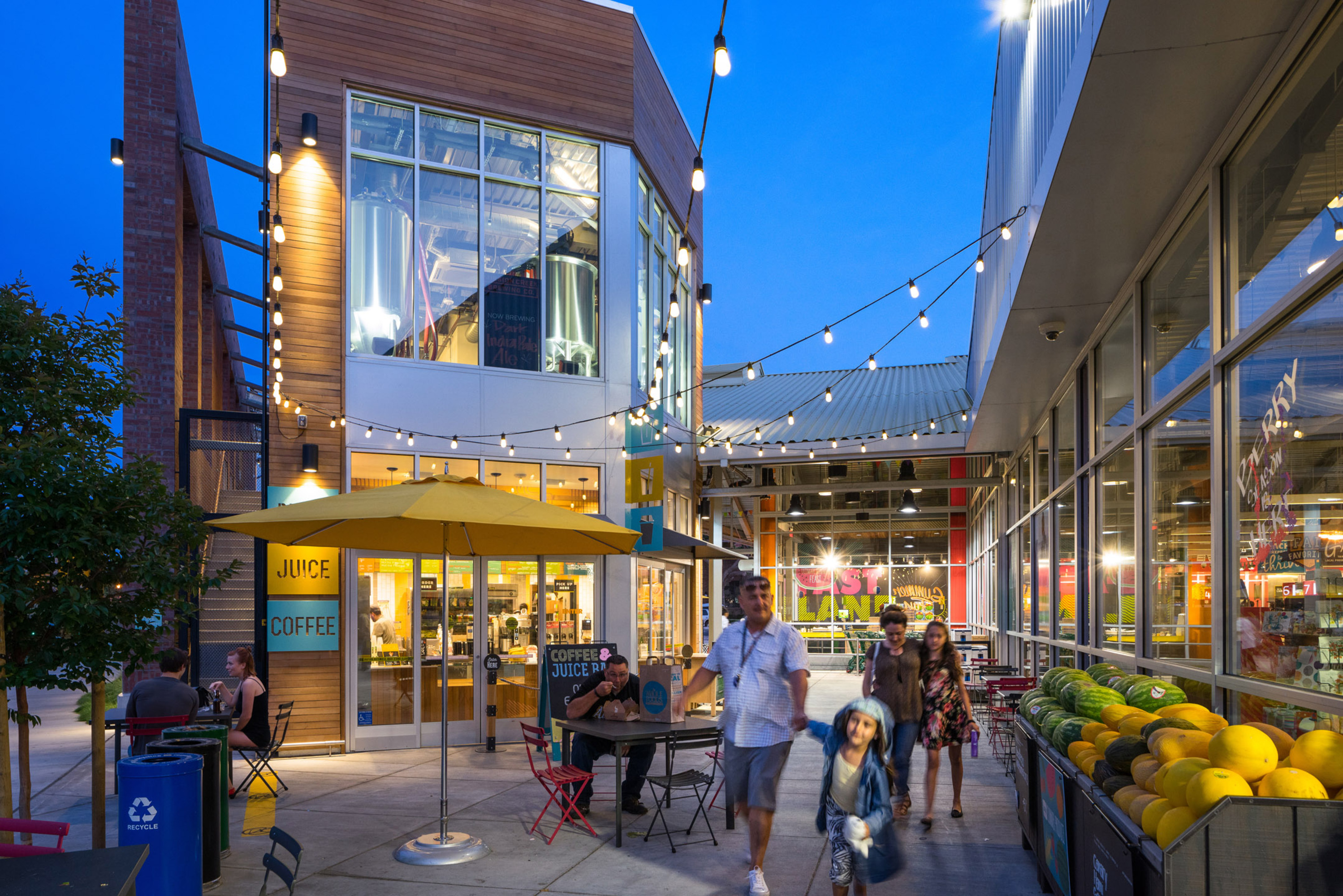 We designed a spacious entry courtyard with a shaded breezeway, creating an outdoor room to sit, relax, and eat a meal. A covered paseo between the two buildings connects the parking lot and street, and welcomes community gathering. We also created Whole Foods’ first in-house microbrewery in the Bay Area. The attached two-story brewery building houses a coffee and juice bar, and boasts a rooftop beer garden so guests can enjoy their stout with a view.